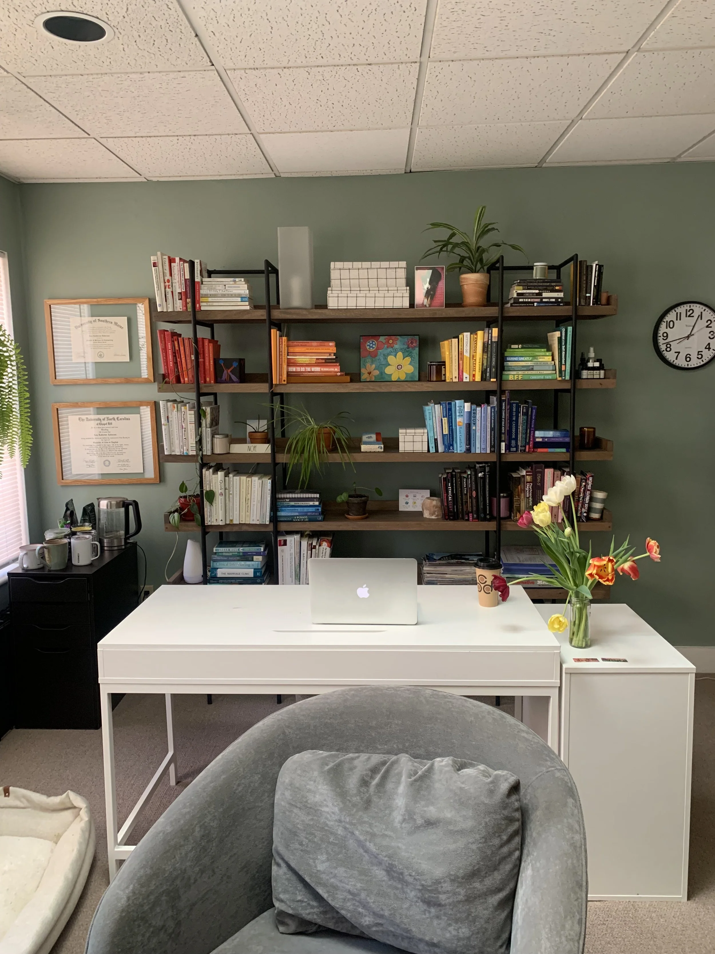 My previous careers led me to counseling. Working in the food service industry taught me to manage my time under pressure. As a reporter and magazine food editor, I learned how to listen and retell a story accurately. As a nursing assistant, I cared for people respectfully, compassionately, and with dignity. I try to incorporate all of these skills to provide unconditional compassion and acceptance and a safe space for my clients to grow and heal.